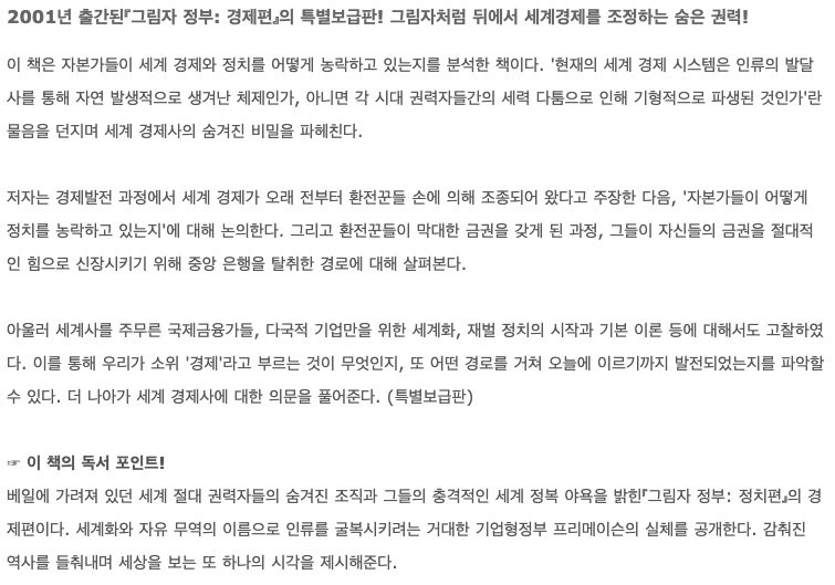 조만간 읽어보리라.... 정부의 역할과 현실에 대하여 알아보고 싶다... 정치적인 면은 아니지만