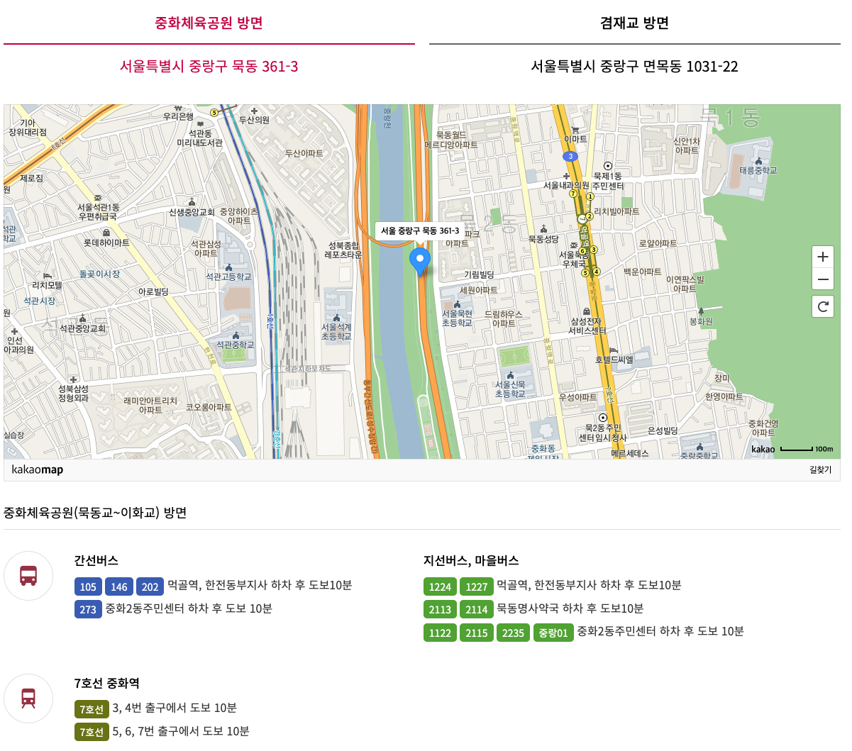 중화체육공원 방면 : 서울특별시 중랑구 묵동 361-3