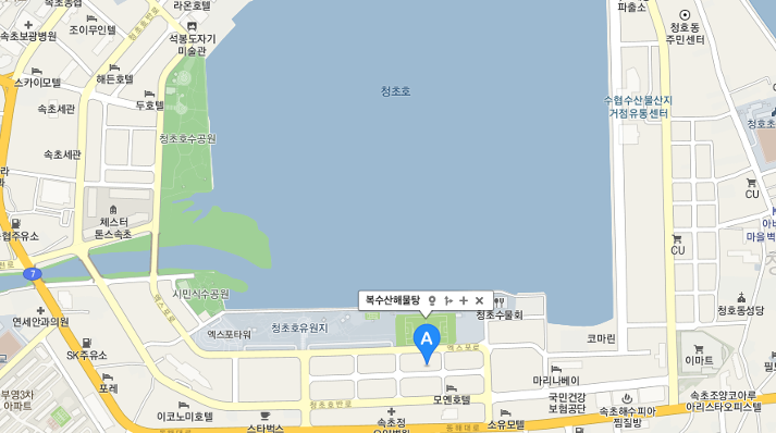 청초호 제2공영주차장에서 주차하신 후, 걸어서 도로따라 동쪽으로 100m 가다보면 간판이 보입니다.