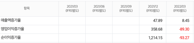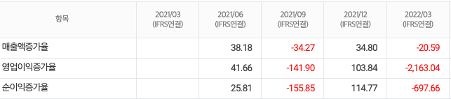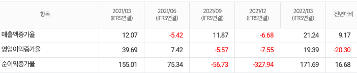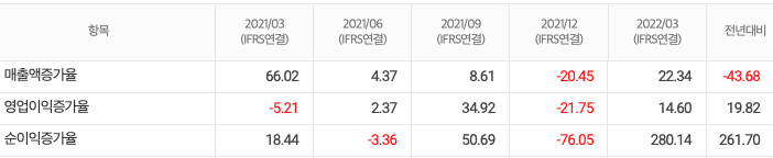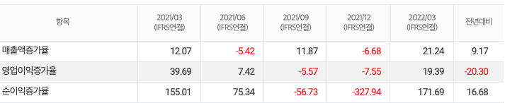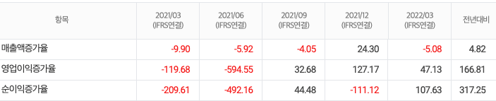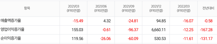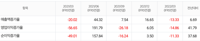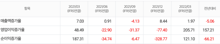"22 Q1 영업이익증가율이 -14.86%으로 1분기가 좋지 않네요.