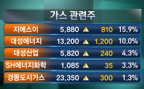 가스 관련주, 천연가스•도시가스 가격 급등