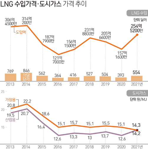 공공요금이라는 한계가 있지만 천연가스 수입가격의 가파른 상승에 7월에도 가격인상을 하고 있습니다.