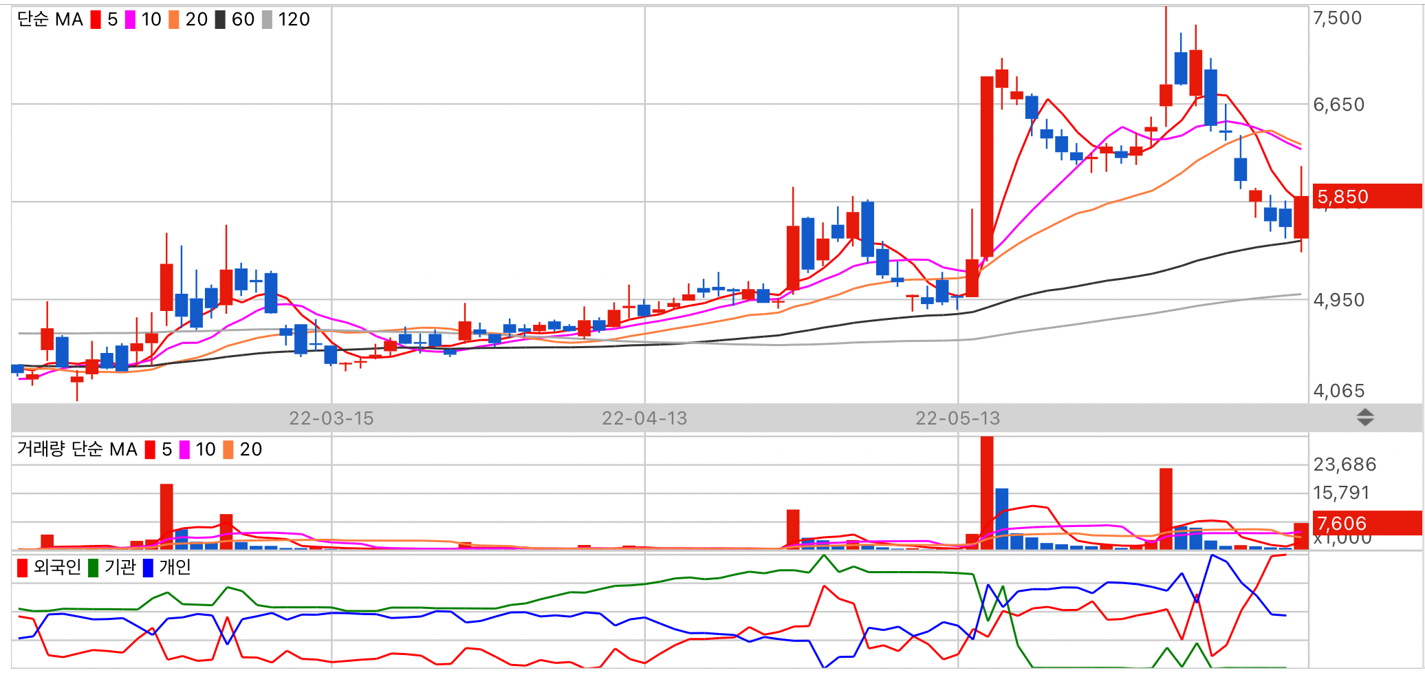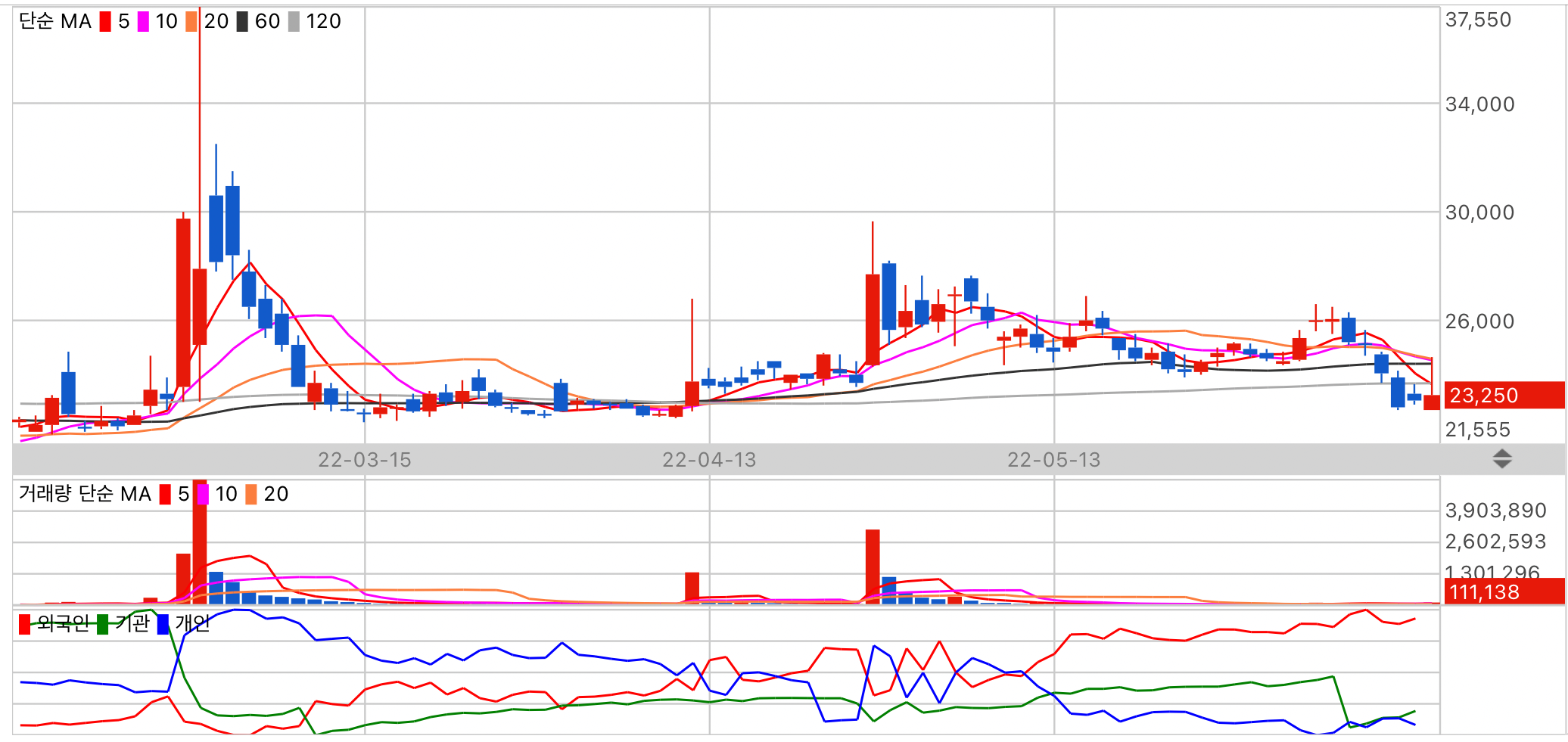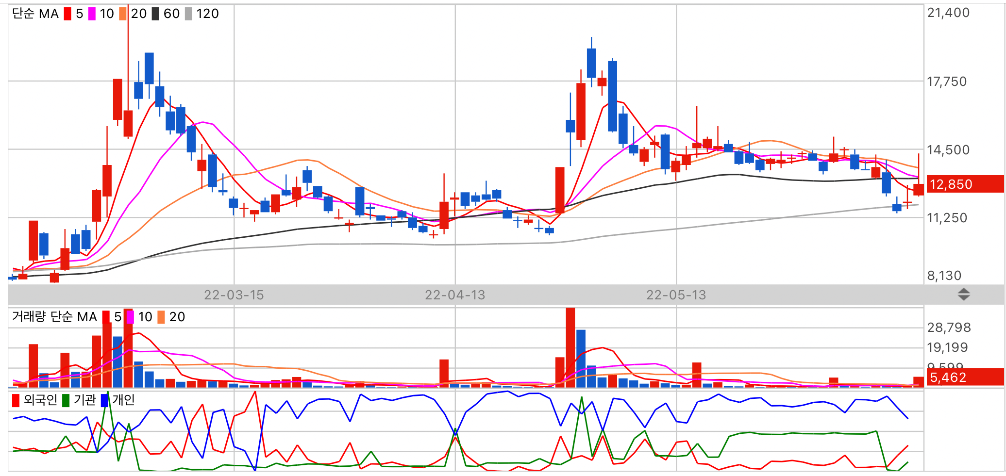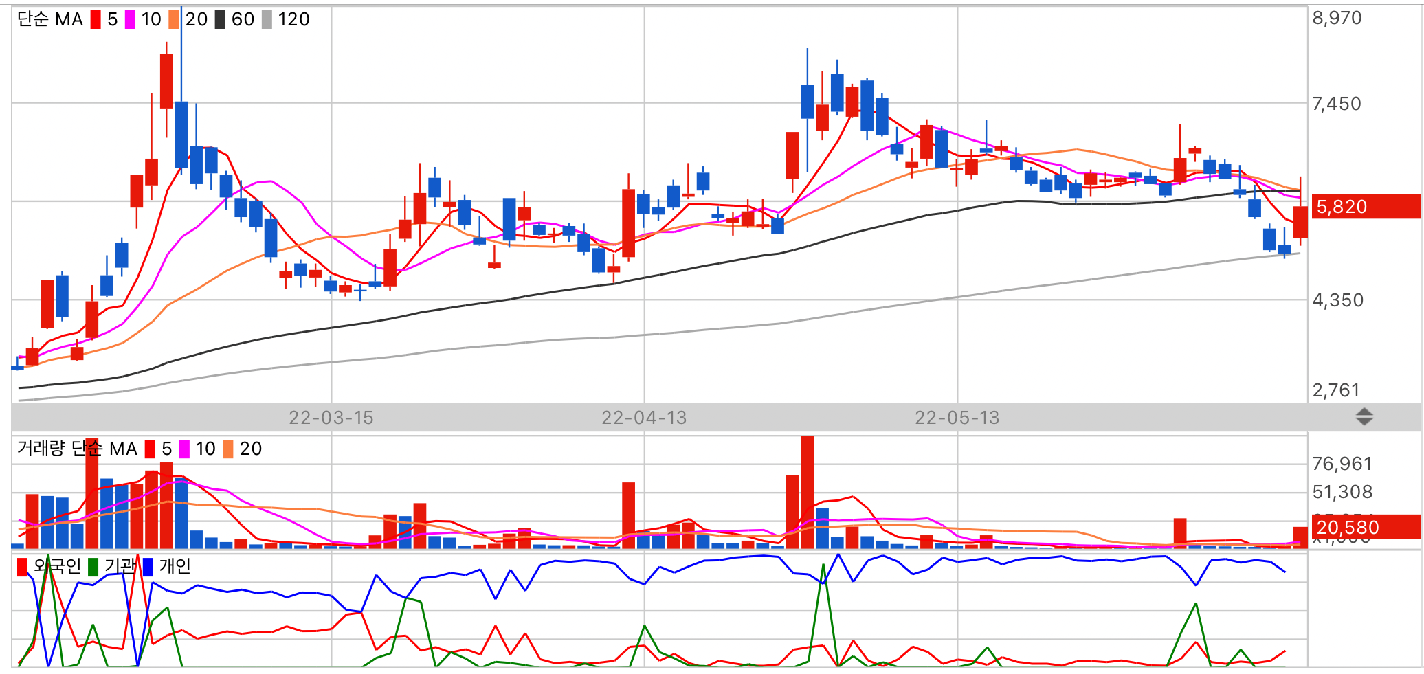 저평가 종목이지만 수급이 저조합니다. 상대적으로 기관 수급이 높습니다.