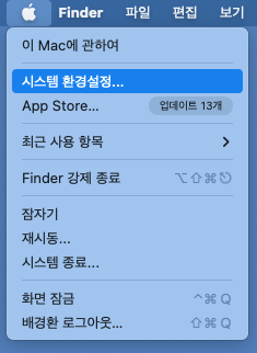 1. '시스템 환경설정' 메뉴 클릭