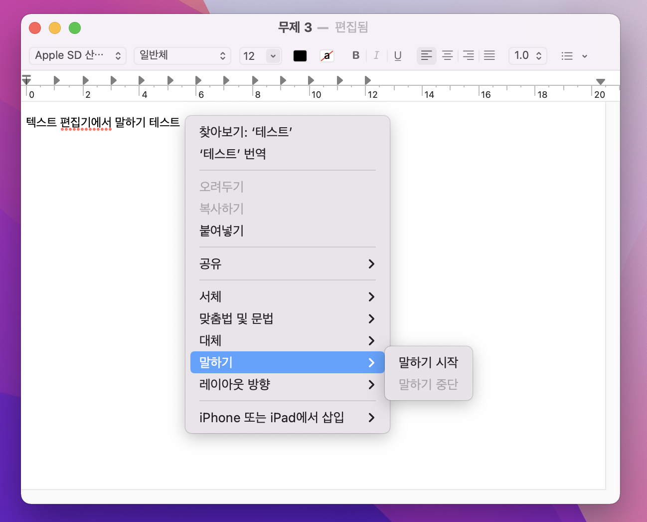 3. 앱 텍스트 편집기(텍스트 편집기에서 말하기 시작)