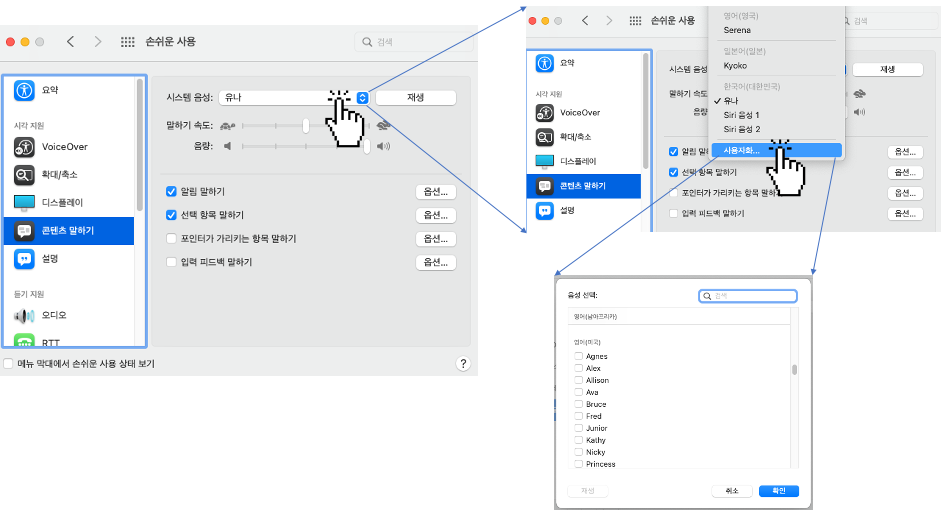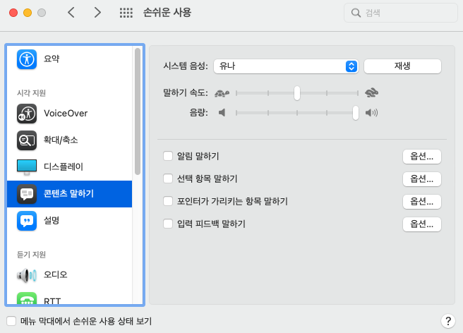 #손쉬운사용 #콘텐츠말하기 #시스템환경설정 #Mac콘텐츠말하기 #텍스트말하기 #텍스트읽기 #목소리변경 #선택항목말하기 #말하기텍스트듣기