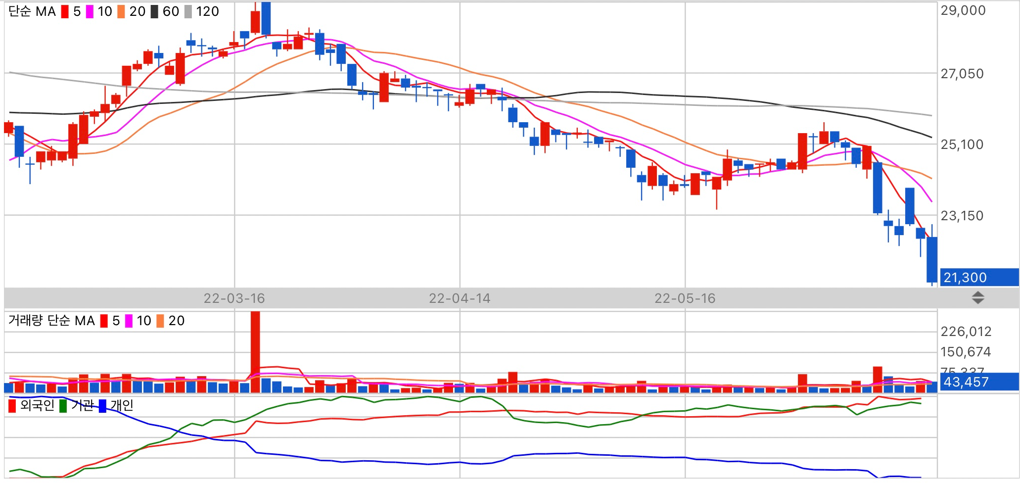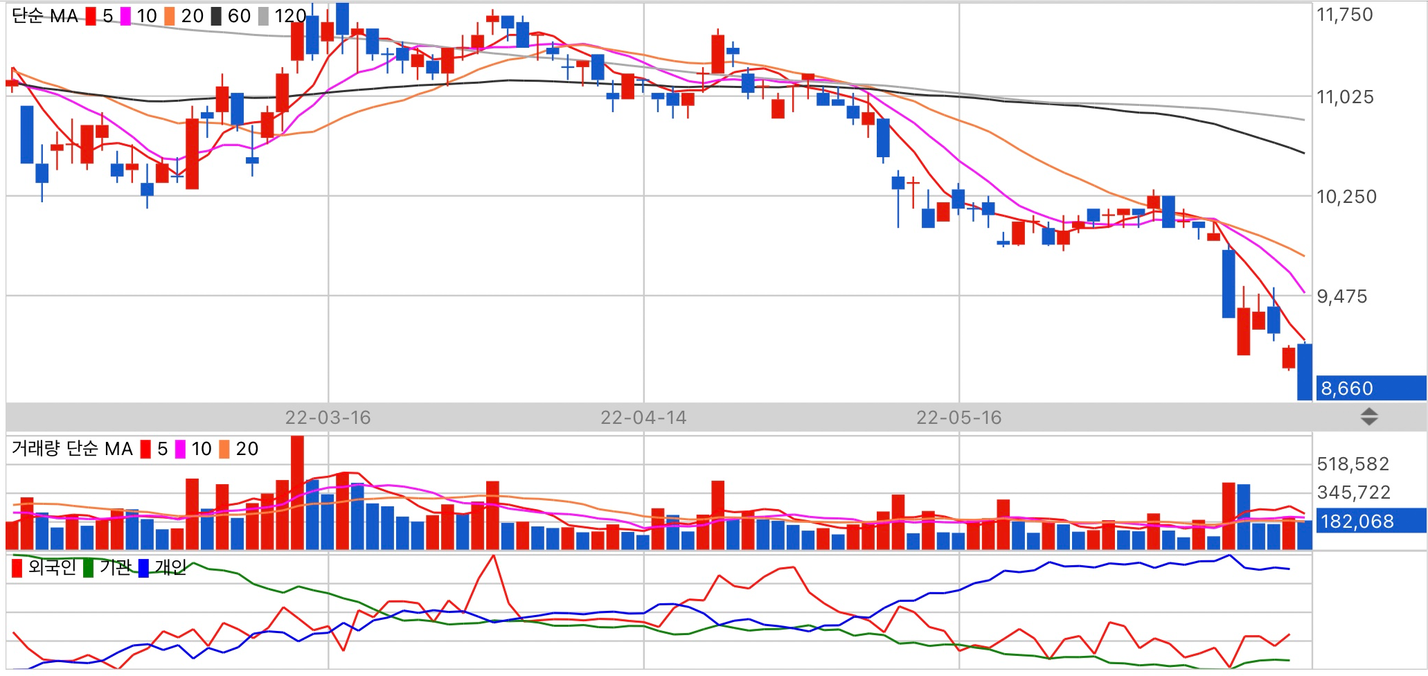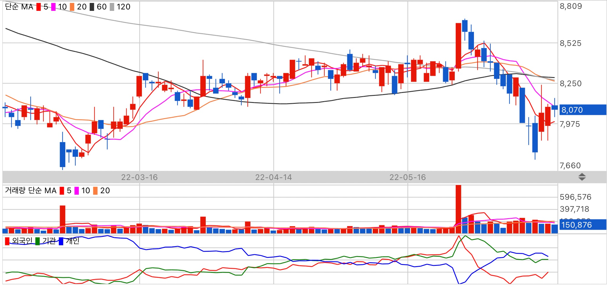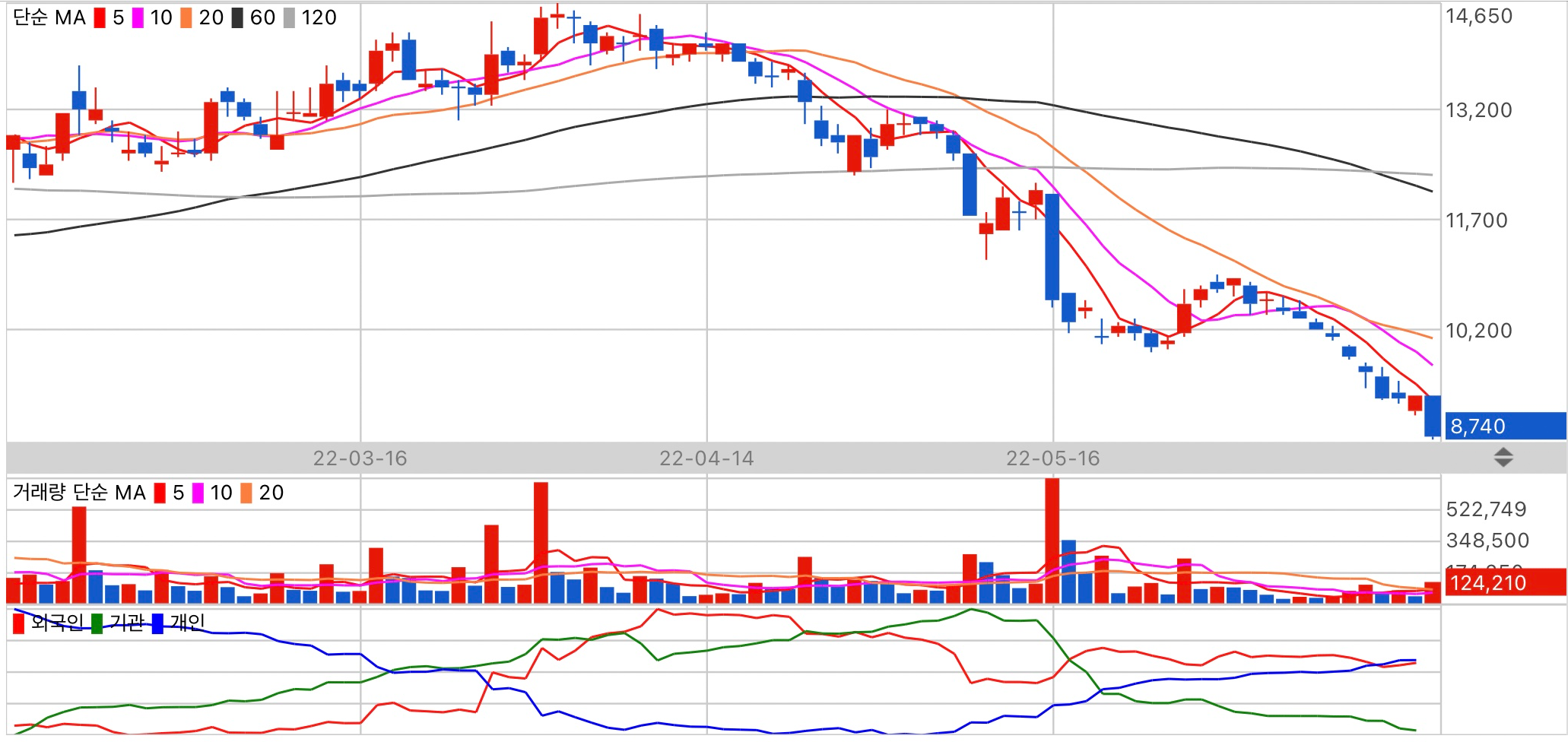 수급 주체 개인의 동향을 주시하세요.