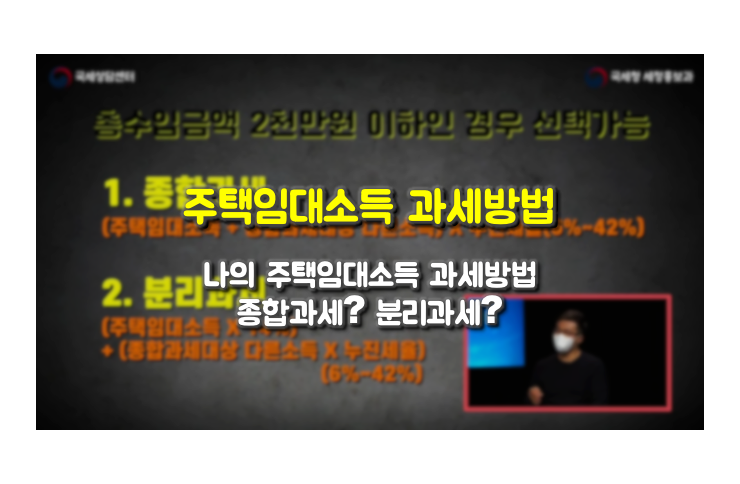 #국세청 #홈택스 #주택임대소득 #소득과세대상 #종합과세 #분리과세 #세금모의계산 #간주임대료 #종합소득세 #주택임대소득비과세대상 #비과세 #전세보증금 #과세대상 #비과세대상 #소형주택 #다주택소유 #공동소유주택