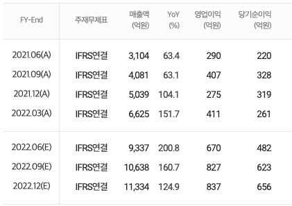 2차전지, 양극재, 음극재 매출이 꾸준히 성장 중.