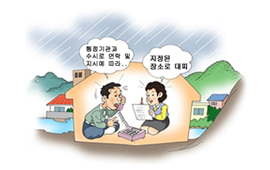• 침수나 산사태 위험지역 주민은 대피장소와 비상연락방법을 미리 알아둡시다.