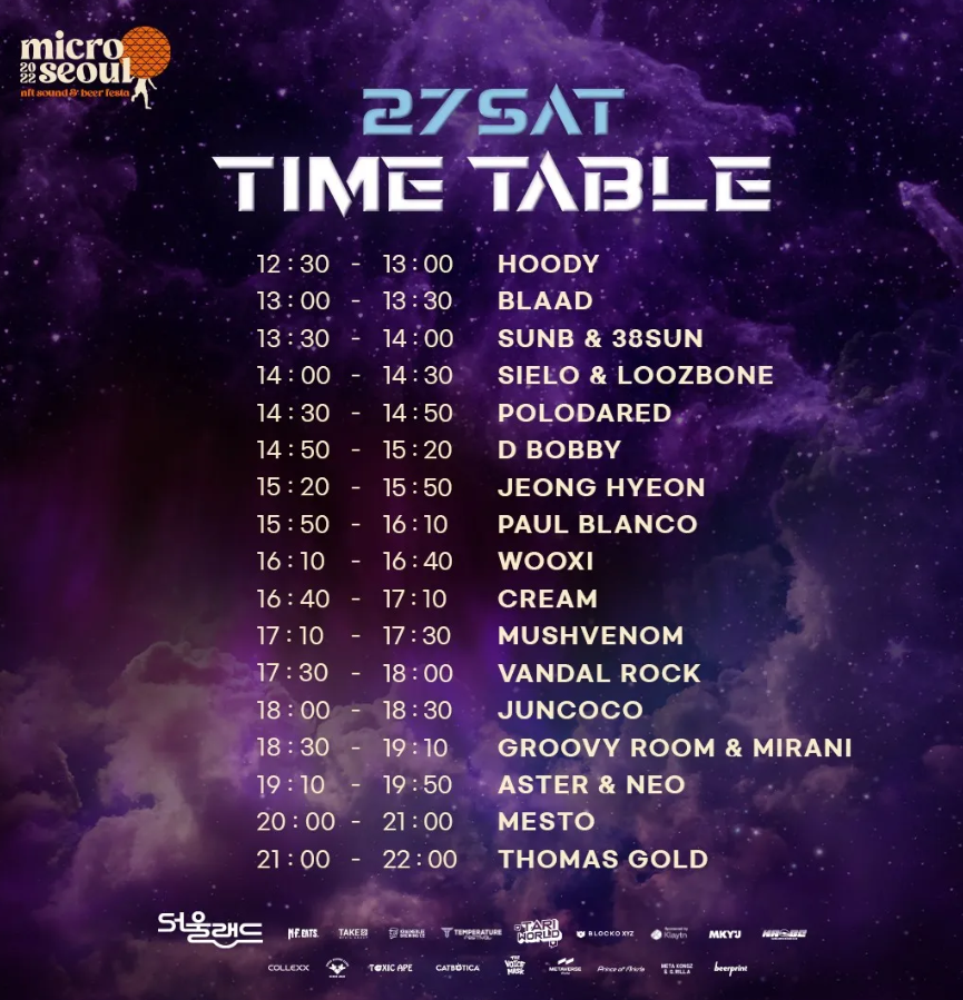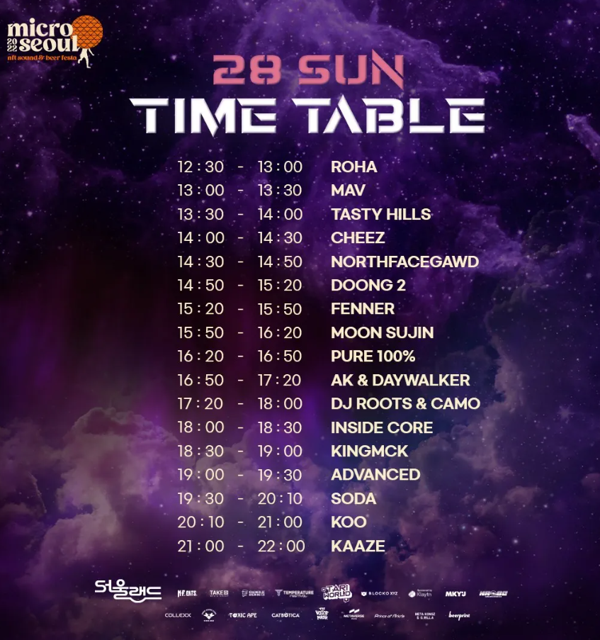 행사협찬 : NF.eats , DOGE SOUND CLUB , CCOLLEXX , TOXIC APE, MEDIA GROUP TAKE2 , KramerLEE , WONA , C.infra , klaytn