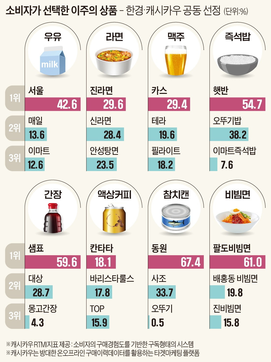 #소비자식품순위 #라면순위 #맥주순위 #커피순위 #비빔면순위 #참치캔순위 #간장순위 #즉석밥순위 #우유순위 #캐시카우 #소비자영수증