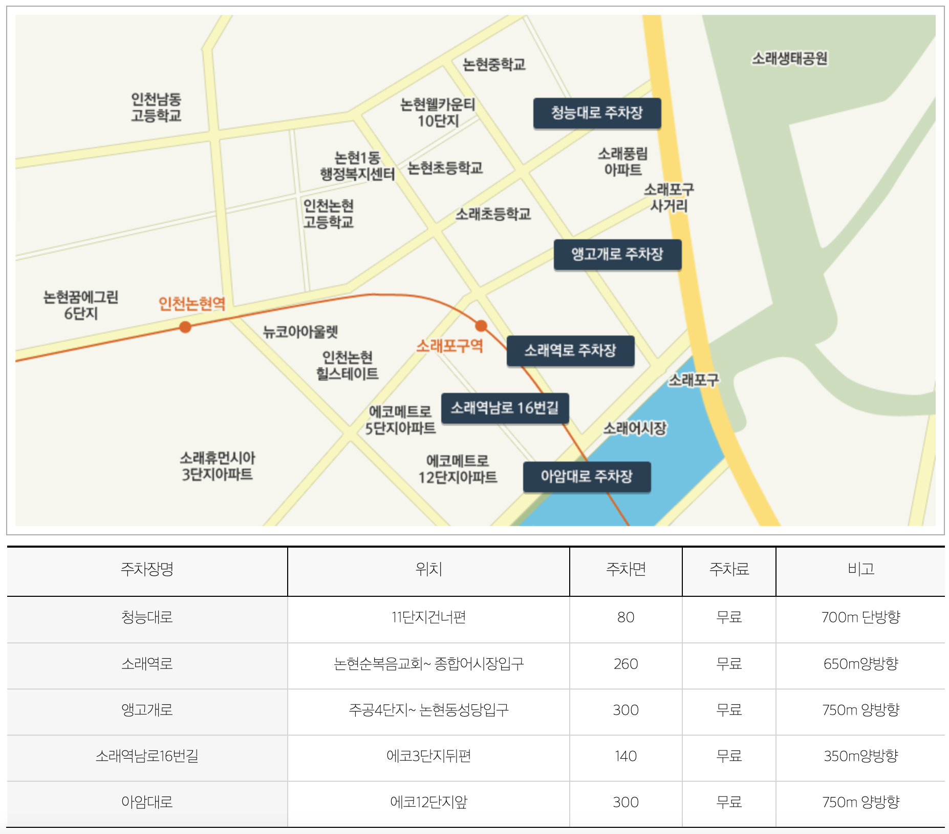 축제 기간 동안 운영하는 임시 주차장 목록입니다.