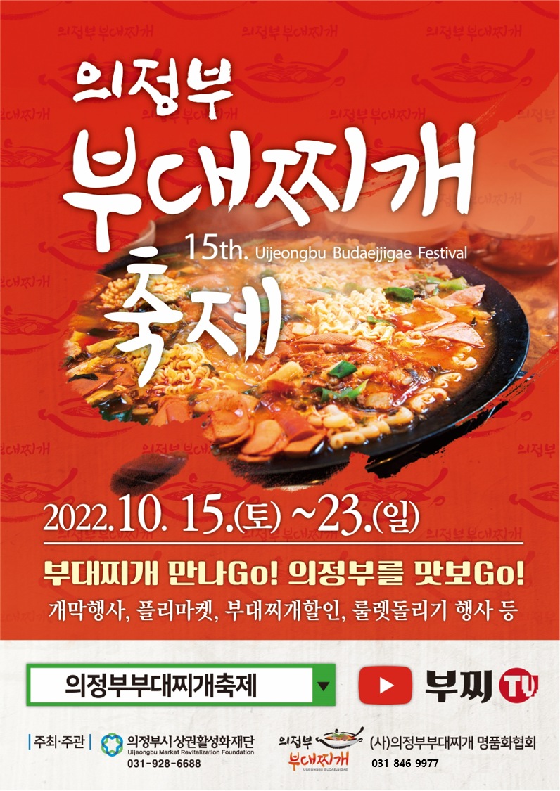 의정부 대표 음식인 부대찌개축제를 온·오프라인 방문객에게 소개하고 많은 먹거리와 볼거리를 제공하는 축제이다. 소상공인이 참여한 축제를 관광자원화하여 코로나19로 침체한 소상공인의 비대면 영업력 증진에 이바지하고, 의정부시에 있는 부대찌개 전문업소를 소개할 예정입니다.