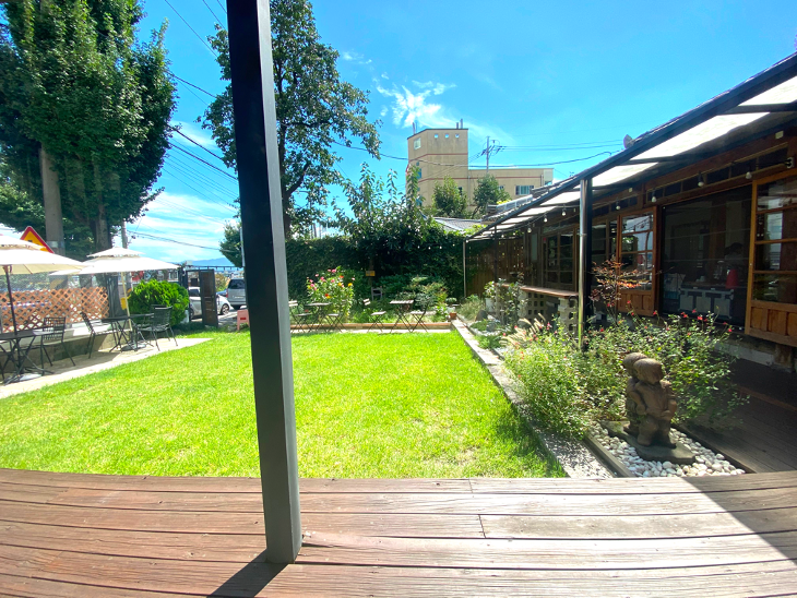 앉아 있으면 잔디 마당이 보여서 눈이 편안하고 기분이 힐링이될 것 같습니다.