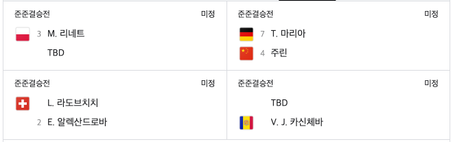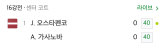 현재 대회 6일차 8강에서는 오스타펜코와 가사노바 경기가 열리고 있고 이 경기의 승자가 올라가면 8강 진출 선수가 결정이 됩니다.