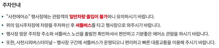 행사장소 : 사천비행장, 사천종합운동장, 사천시 문화예술회관 등