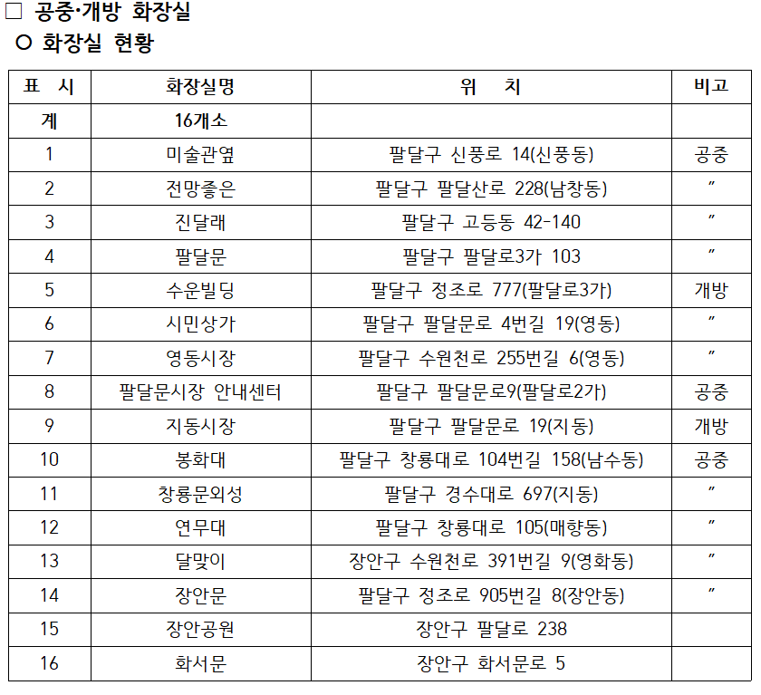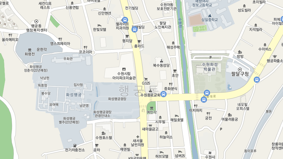 - 지하철 : 수원역 하차 후 10번출구 앞 버스 승차 -> '팔달문.이안과정류장' 하차 후 도보 이동