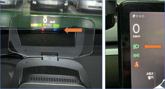 그런데, 운전하려고 차량을 켜니 HUD에 이상한 표시가....