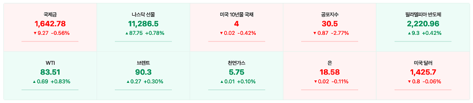 🔹 역외환율(원/달러), -3.31(-0.23%) 1,425.34