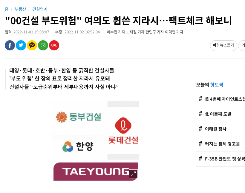 건설사 부도설까지 추가된 소문들이 돌고 있습니다.