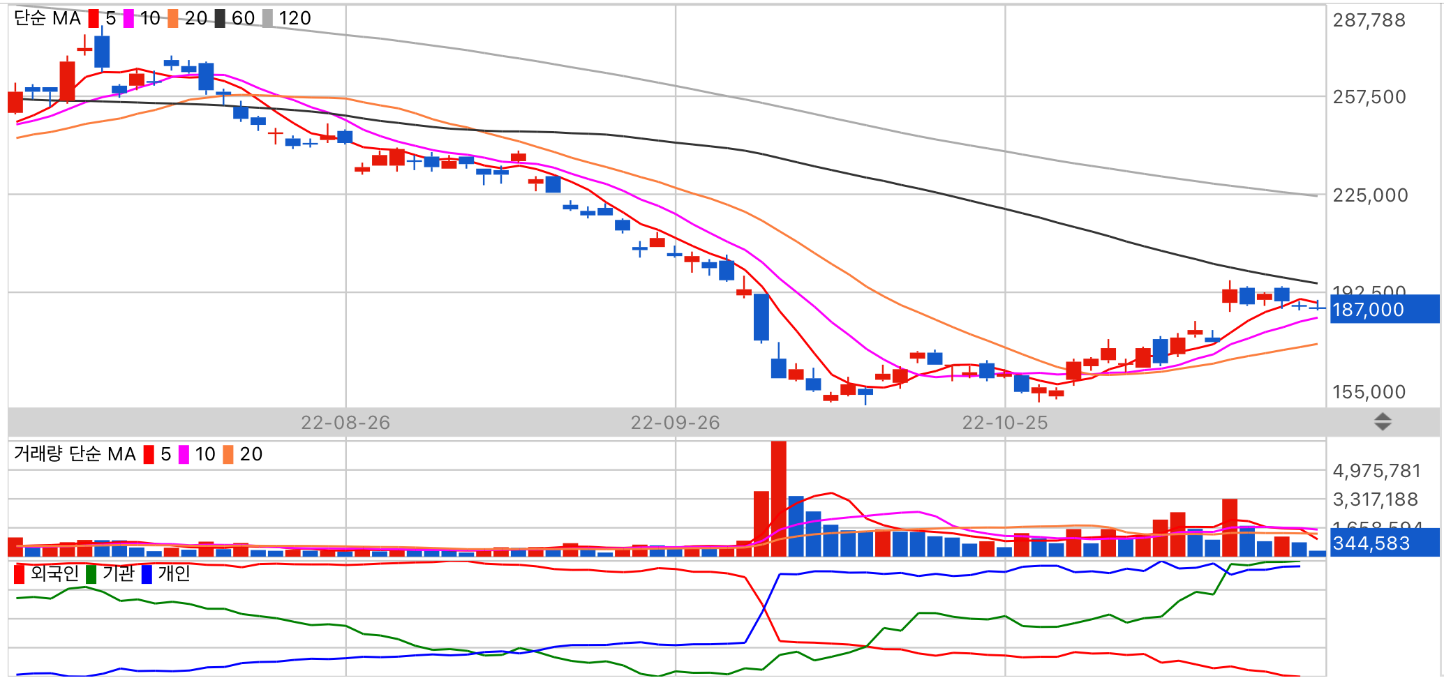 현재 가치는 저평가이며 업종모멘텀은 우수합니다. 수급 주체 기관의 동향을 주시해 주세요.