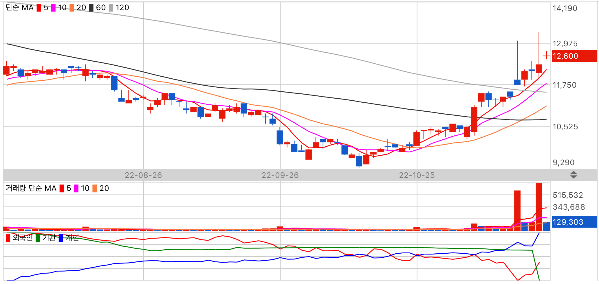 현재 가치는 저평가이며 업종모멘텀은 우수합니다. 수급 주체 기관의 동향을 주시해 주세요.