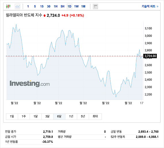반도체 관련 주요 지표인 필라델피아 반도체 지수 또한 양호한 흐름을 보여주고 있습니다.