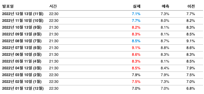미국 노동부는 13일 지난달 CPI 상승률이 전년 동기대비 7.1% 기록했다고 발표했습니다. 이는 시장예상치를 하회하는 결과다. 전월대비로는 0.1%증가로, 시장예상치 0.3%였습니다.
