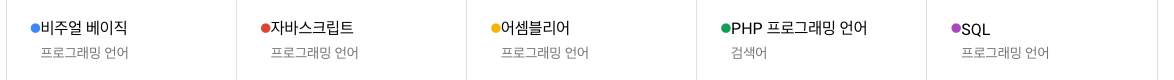 다음 6위~10위 Visual Basic(비주얼 베이직 언어), JavaScript(자바스크립트 언어), Assembly language(어셈블리 언어), PHP(PHP 언어), SQL(SQL 언어)입니다.
