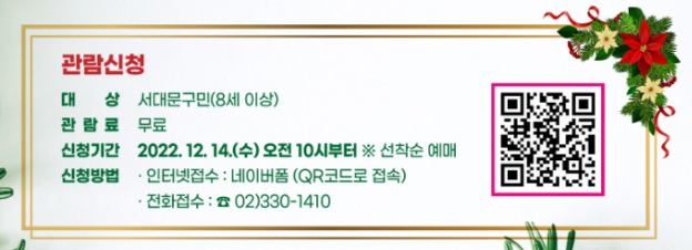 신청기간 : 2022.12.14.(수) 오전 10시부터 선착순 예매.
