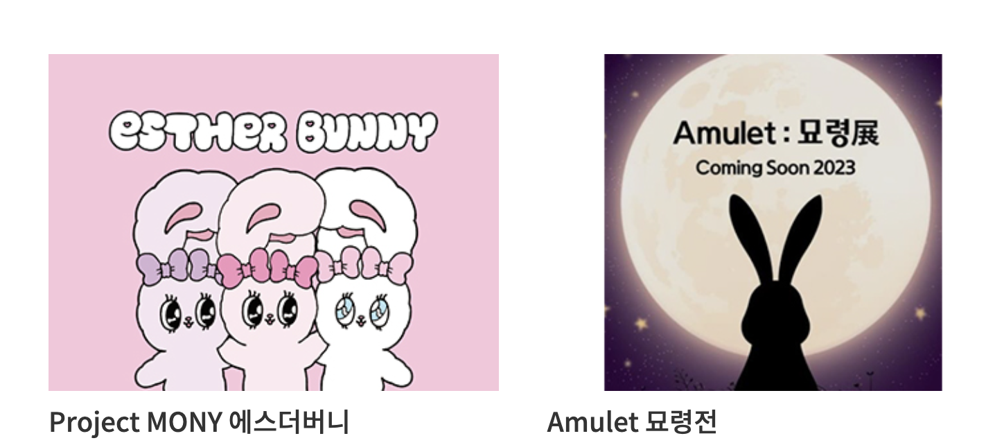 작품의 소재는 새해의 띠 동물인 '토끼'이며, '묘령전'이라는 주제의 NFT 아트 갤러리와 레고로 제작된 '브릭아트전'이 진행됩니다.