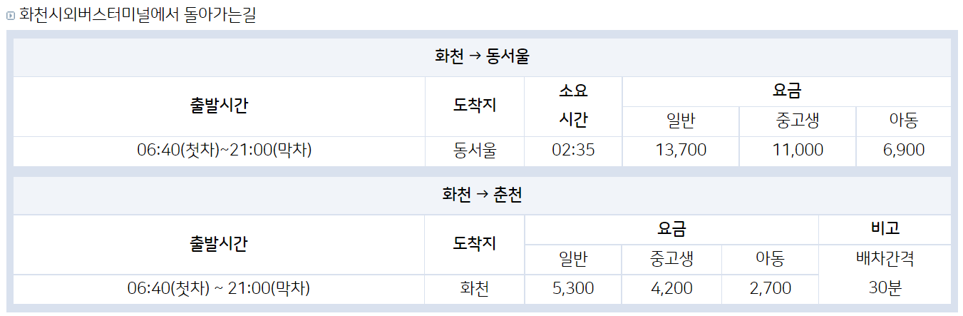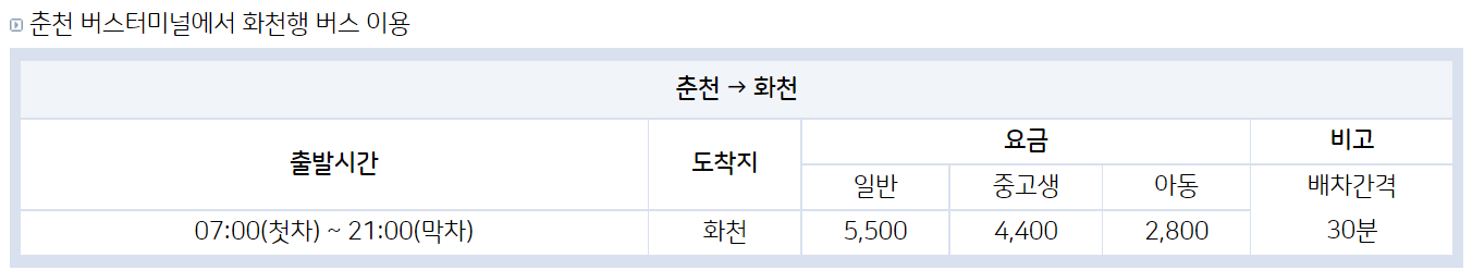 🚏 화천공용(시외)버스터미널 : https://www.ihc.go.kr/www/contents.do?key=237