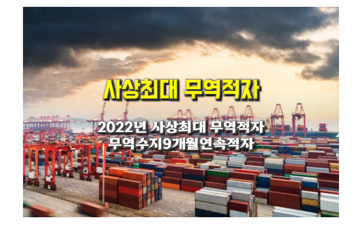 2022년 대한민국의 무역수지 적자가 472억달러(약 60조원)로 연간 기준 역대 최대치로 공개되었습니다.