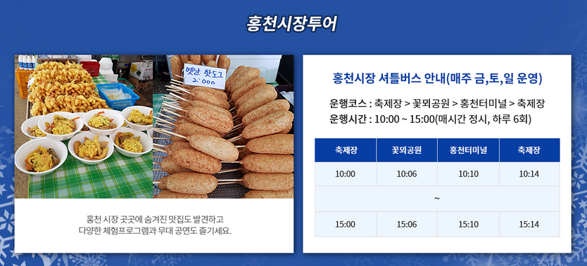전화번호 : 033-439-5853 (홍천문화재단 축제운영부)