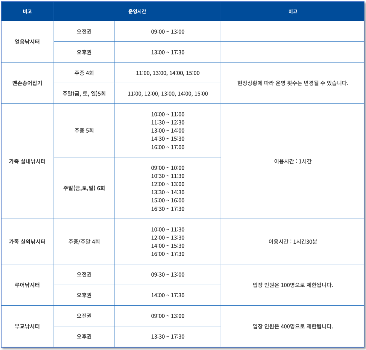 | 오후권 | 11:30 ~ 16:00 |