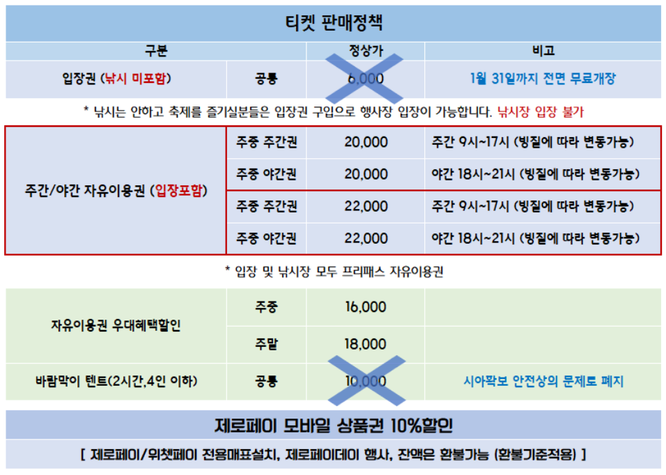 🎣 얼음낚시(주중/주말) : 20,000/22,000, 🎣 우대할인(주중/주말) : 16,000/18,000