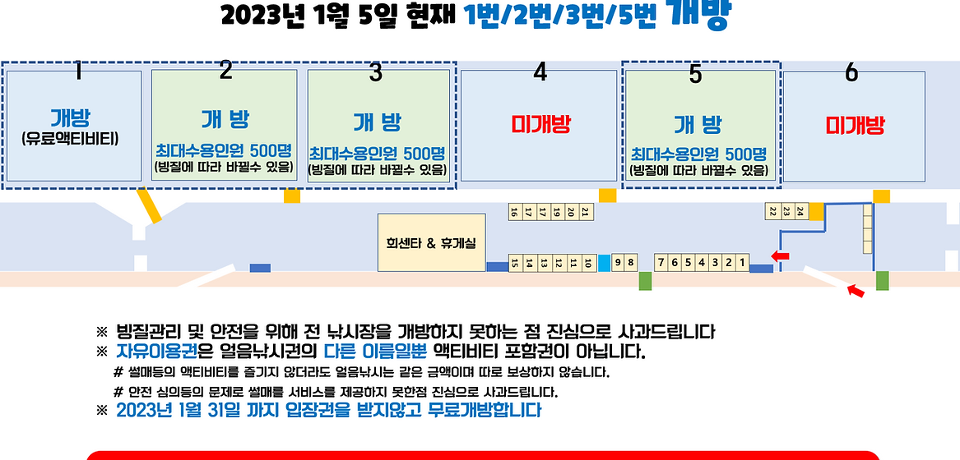 🔺 인공얼음 설비공사 및 빙질관리로 인하여 낚시터 개방상황이 변경되고 있으니 참고하세요.