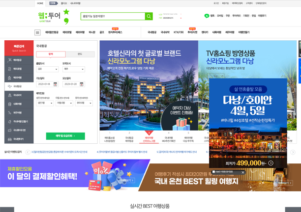 웹투어. 항공권, 국내숙박, 국내여행, 울릉도여행, KTX예약, 기차예약, 호텔예약, 제주도항공권, 제주렌트카 한 번에 해결!