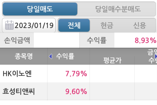 효성티엔씨, HK이노엔은 아직도 더 상승할 것으로 보이나 구정연휴가 지난 후에 재확인해 볼 생각입니다.