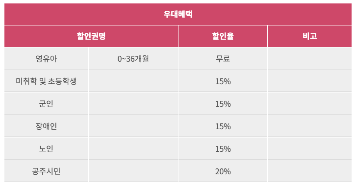 ※ 놀이시설 체험은 우대할인, 혜택할인은 받지 못합니다.