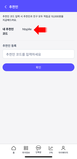 3 '추천인'페이지에서 '내 추천인 코드'를 입력합니다.