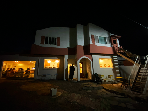 그런고 또, 여기 식당이 넓은 곳이 아니라서 밖에서 기다려야 합니다.