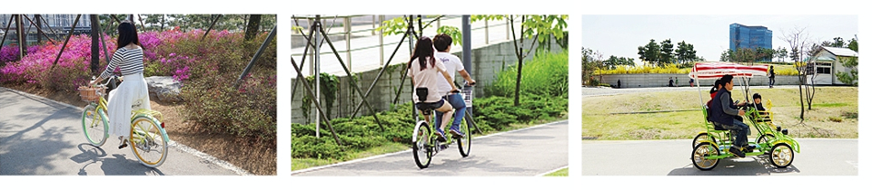 산책로에서는 자전거를 대여하여 혼자서나 2인 4인으로 즐길 수 있습니다.