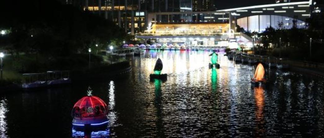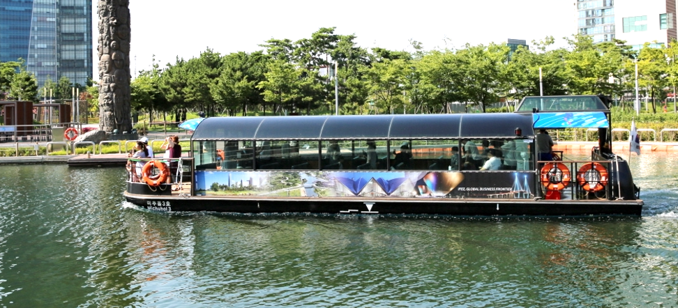 밤이 되면 높은 빌딩 숲 사이 도심공원의 해수로 위로 달 모양의 배가 떠다니구요. 낮에는 햇빛을 받아 반짝이는 해수로를 오가며 공원의 풍경을 즐기고 밤에는 빌딩들의 조명으로 운치를 더한 야경을 즐기면 되요. 인천 송도국제도시의 랜드마크이자 대표적 관광지인 센트럴파크에는 해수로를 따라 물 위를 떠다니는 보트들이 있어 운치도 있어요.