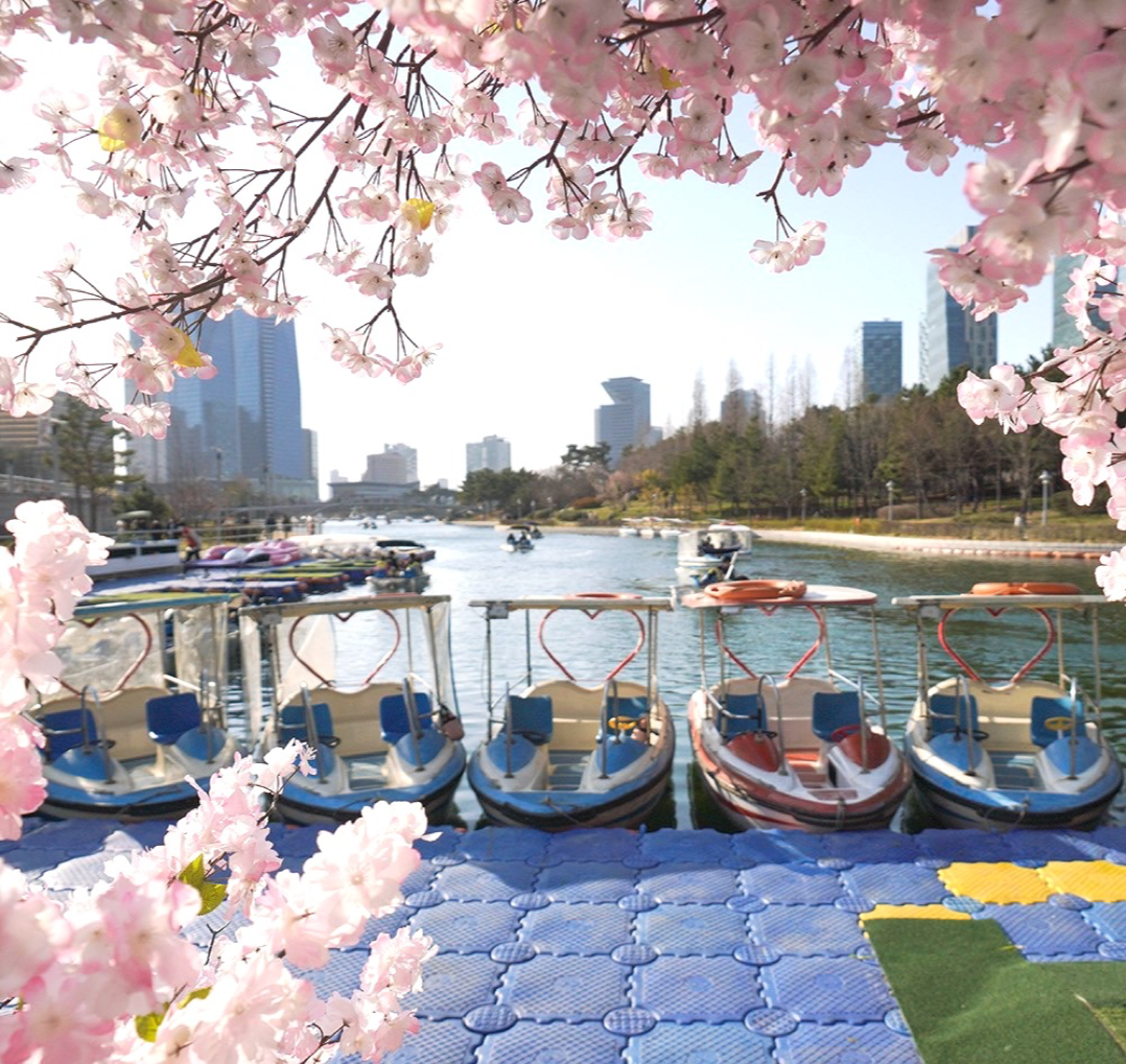 보트하우스의 보트들도 벚꽃의 풍성함 속에 파묻힌듯 아름다운 풍경을 보여주네요.
