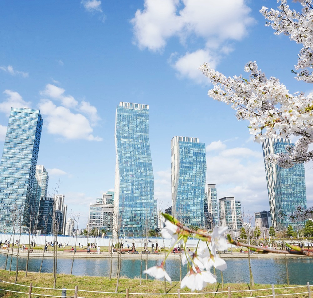 송도센트럴파크의 경우에는 벚꽃명소이긴한데 언제가더라도 야경이 이쁘고 낮에는 산책하기 좋고 주변에는 맛집 카페가 많아서 아주 인기가 높은 곳이에요. 차량 공유회사에서 지난해 가장 많이 이용자가 찾은 곳으로 선정되기도 하였습니다.