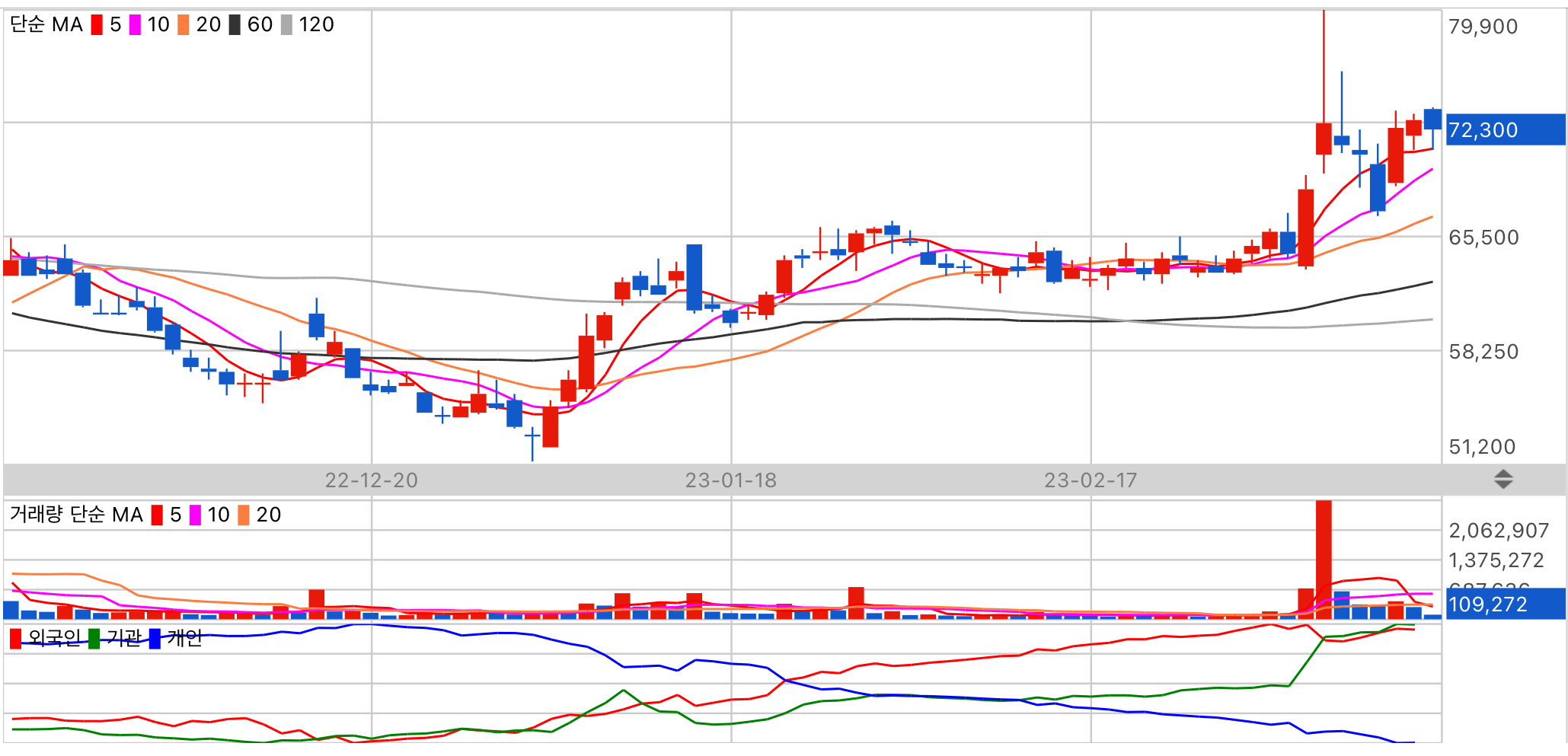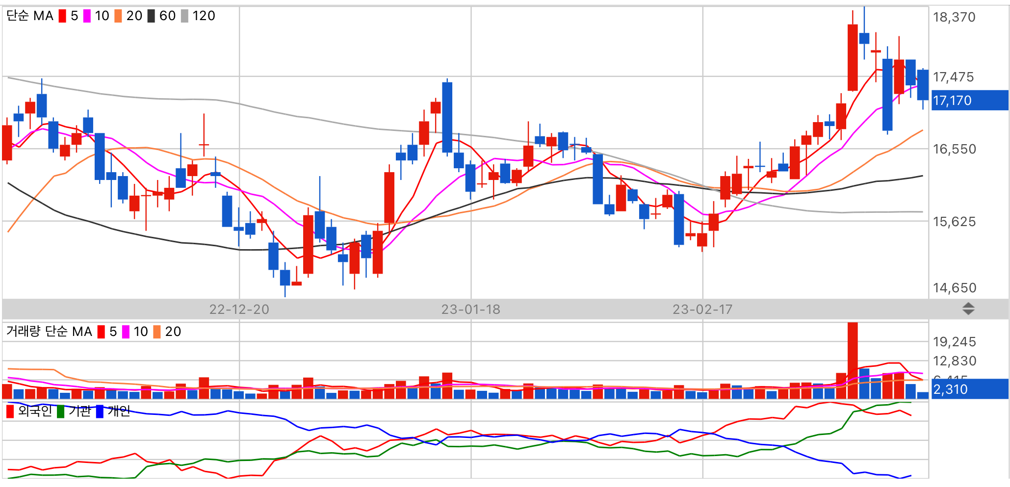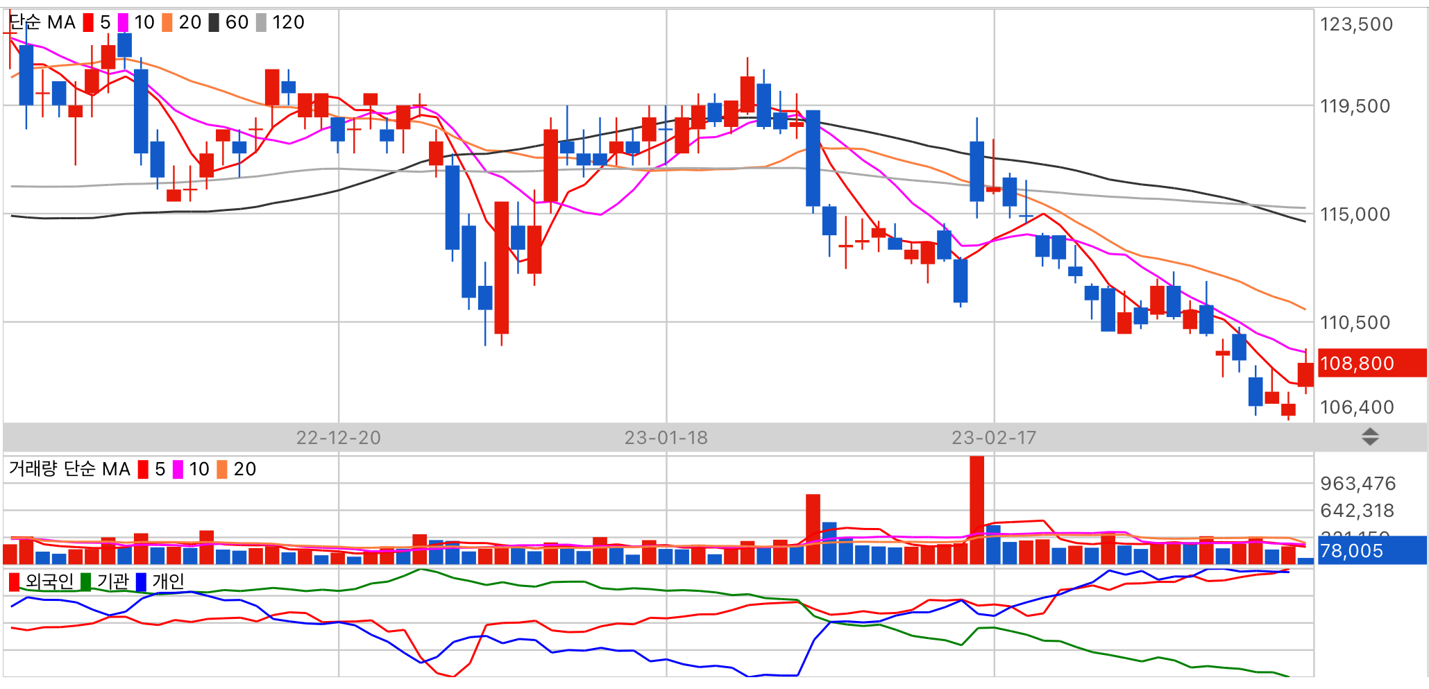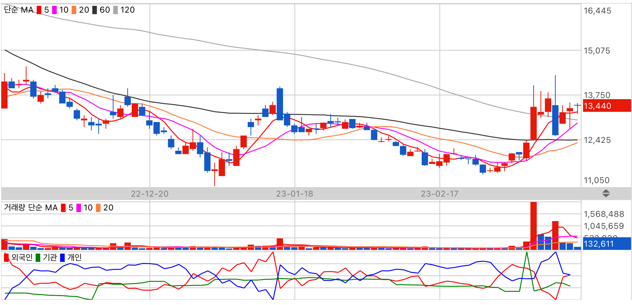 분석하려는 데이터가 부족합니다. 수급 주체 기관의 동향을 주시해 주세요.