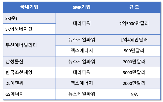 SK그룹은 테라파워에 2억5000만 달러(약 3000억원)를 투자하며 적극적으로 나서고 있습니다.