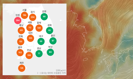 국외(중국발 스모그 등)에서 미세먼지가 유입되는 가운데 대기가 정체해 미세먼지 농도가 높아질 수 있습니다.